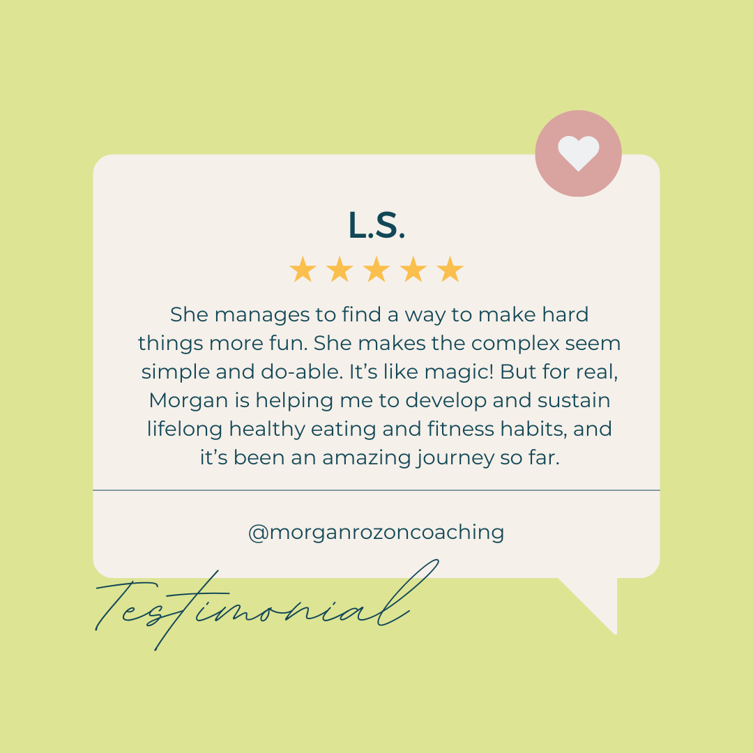 At Morgan Rozon Coaching, my mission is to guide busy women over 30 in creating realistic and practical health solutions that fit their lives. Through nutrition, habits, mindset, and movement, I help them build lasting change, feel confident in their choices, and acheive the long-term well-being they deserve.